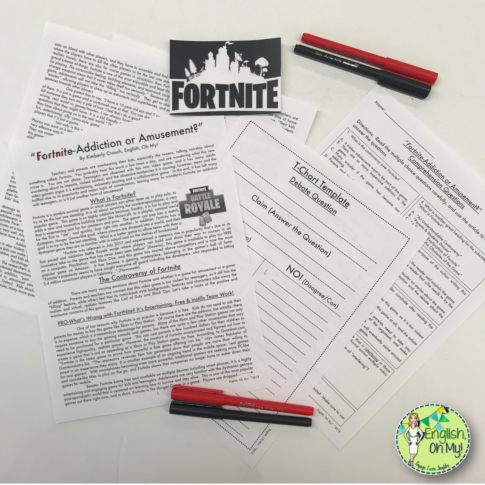 I did my research, found credible sources, and began writing an article on Fortnite and whether it is an addiction or amusement. I knew this would be a hit with my students. In addition to writing the article, I created multiple choice questions for reading comprehension, as well as an argument short answer question. BAM! HIGH FIVE! I also figured other teachers could relate to this phenomenon in their classroom and use it in their own classrooms; therefore, I posted it in my Teachers Pay Teachers store, and I didn’t realize how popular the article would become! Cleary, I am not the only teacher dealing with this craze! Here is what the product looks like: